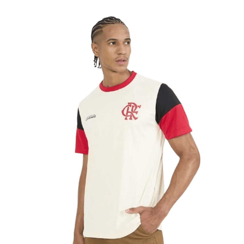 Confeccionada em Dry Max 100% poliéster, tecido leve, respirável e de excelente caimento, que garante conforto e pele sempre seca. O modelo traz recortes rubro-negros nas mangas, além do escudo e da assinatura do clube no peito. O destaque fica para a estampa em toque zero que simula a vibração das cordas vocais com o escrito do hino, traduzindo a energia e a força do canto da Nação Rubro-Negra.