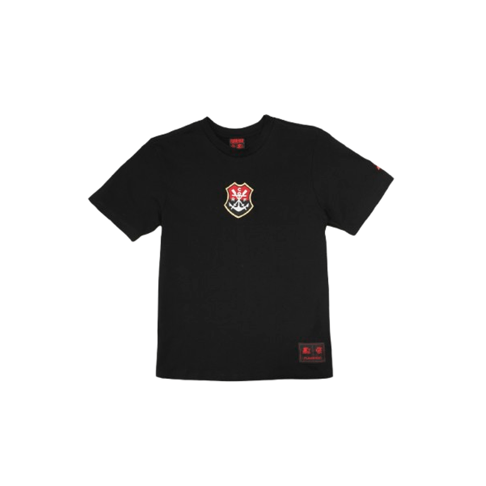 Com escudo aplicado no centro do peito, o modelo aposta no minimalismo para destacar a tradição do clube. A etiqueta personalizada na barra reforça a autenticidade da collab, enquanto o tecido leve e a modelagem confortável garantem liberdade de movimento para o dia a dia dos pequenos.