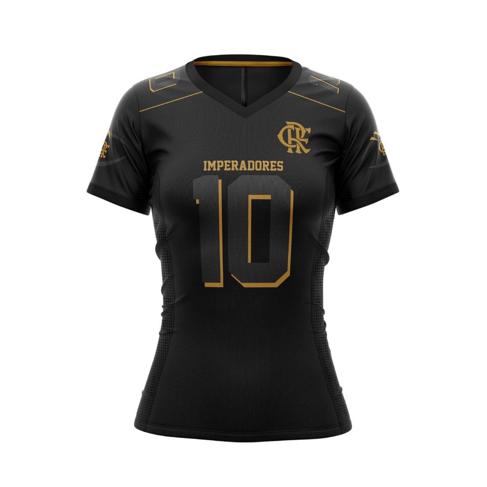 Traz uma modelagem diferenciada, inspirada nos uniformes de futebol americano, garantindo um visual moderno e imponente. Seu mix de tecidos proporciona conforto e respirabilidade, ideal para o dia a dia ou momentos de torcida. Destaque para o transfer emborrachado dourado do CRF, aplicado no peito, adicionando um toque sofisticado e exclusivo à peça. Tecido: Lummy Dry