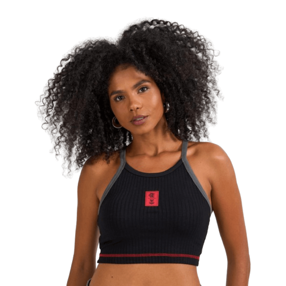 Com alças finas na cor chumbo e trançado contrastante na barra, a peça é finalizada com uma etiqueta bordada texturizada centralizada no peito. Confeccionado em tecido que se ajusta facilmente ao corpo, oferece ótimo caimento e um toque suave, proporcionando maior conforto à pele.