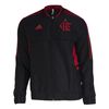 Informações e Características do Produto: Nome do Produto: Jaqueta Flamengo Hino Ano: 2022 Modelo: Casual Composição: 100% poliéster Marca: Adidas Gênero: Masculino Cor predominante: Preto Escudo do Flamengo bordado Logo Adidas em termotransfer Fecho de zíper Sarja 100% poliéster reciclado Forro de mesh Jaqueta leve para os torcedores Bolsos frontais com zíper Punhos e barra canelados Garantia contra defeito de fabricação